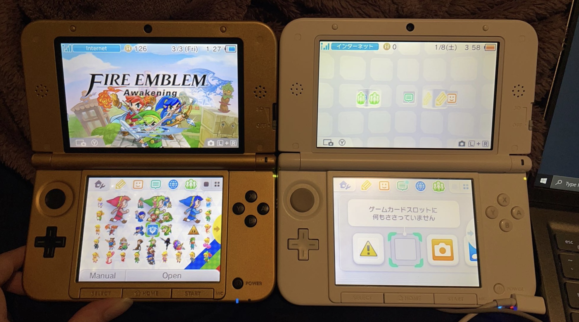 in 2011, i had gotten one of those blue original 3ds’ for my birthday, and i was ecstatic. i was on it almost constantly, until one day, for a reason i still don’t really know, i got out of bed and opened it up and the screens just. never came back on. it would power on, but the display just never worked again. i was devastated, and not fully convinced it wasn’t something i did directly (rude of them btw), it took years of convincing after that for my parents to even consider getting me another one. until 2014, when my mom finally gave in and got me a link between worlds edition 3dsxl. not only was this a new 3ds, but it was an xl AND a zelda edition? so obviously i treated that one like my very own child… so you can imagine why i was hesitant when i decided i wanted to mod a 3ds in 2023. so hesitant in fact, i bought a whole new japanese 3dsxl off ebay to do so. do i regret it? absolutely not. i love having a different model to add to my handheld collection. but realistically, after actually putting the minimal time and effort you need into doing it… i realized it actually wasn’t that serious.